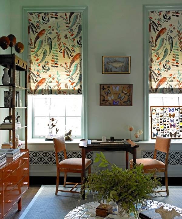 До сих пор мы рассматривали только классические римские шторы с твердыми планками внутри. Давайте также уделим внимание их упрощенной разновидности «relaxed roman shades» или «расслабленные» шторы, которые немного прогибаются внизу и придают интерьеру приятную мягкость.
