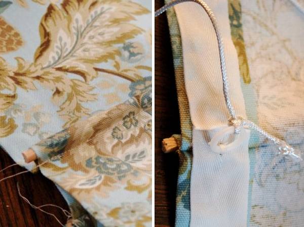 5. При использовании деревянных брусьев вам понадобиться дополнительно пришить колечки, в которые будет продеваться шнур. Сами деревянные планки вы можете приклеить или вшить, по своему усмотрению.