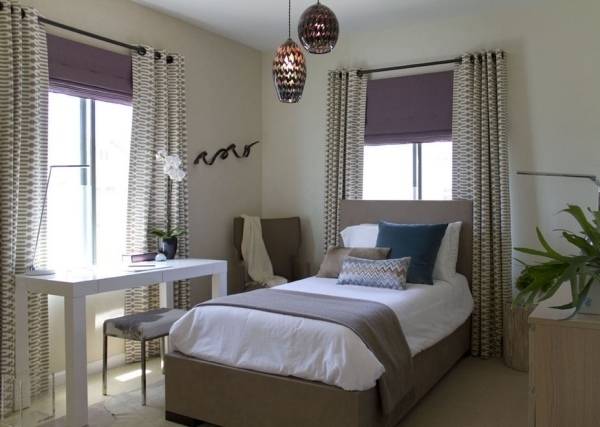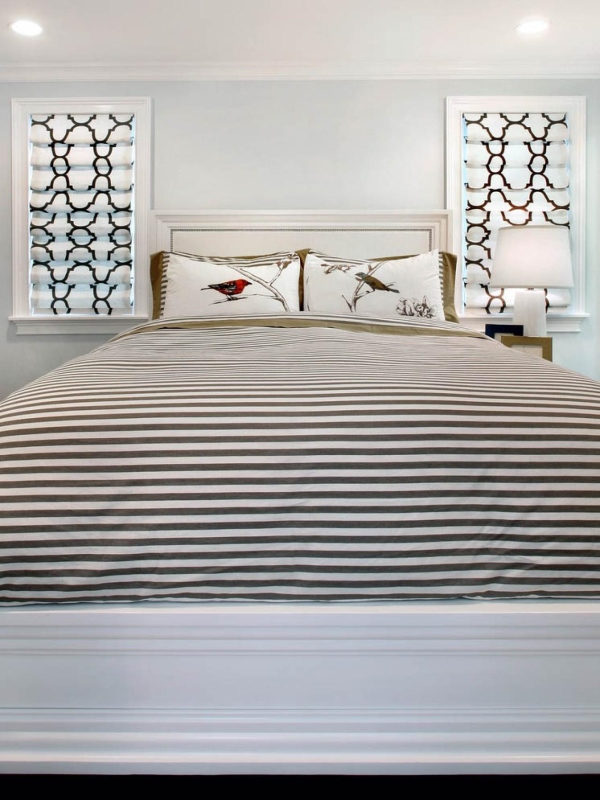 Из-за своей мягкой внешности римские шторы просто фантастически выглядят на окнах спальни, особенно в сочетании с длинными занавесками. Выбирайте светлую ткань для создания свежего стиля, или же темную — для получения дополнительной защиты от уличного света.