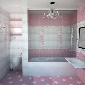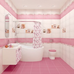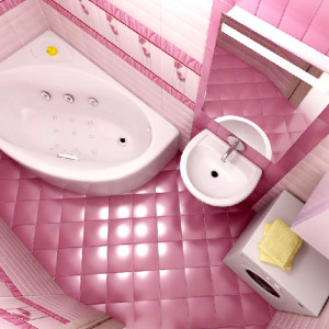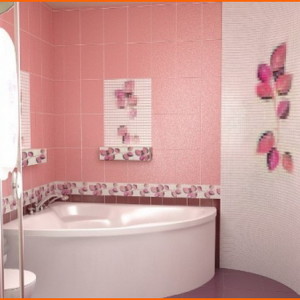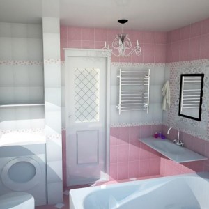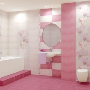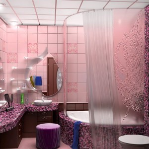 Как вариант, можно повесить зеркало в нежно-розовой раме, сушилку для полотенец, подставку под зубную щетку такого же типа. Также как дополнение, можно положить маленький коврик для ванной с причудливым узором.