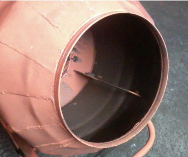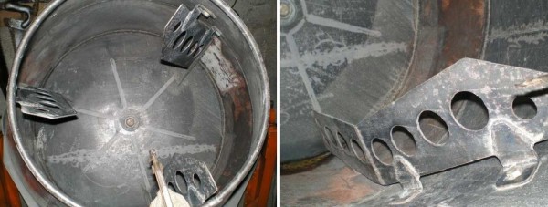 Внутри бочки наварили лопасти для более эффективного перемешивания раствора.