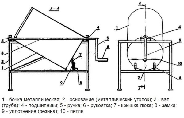 Чертеж ручной самодельной бетономешалки из бочки