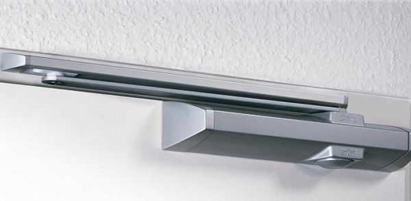 Есть, кстати, напольные модели и для деревянных и металлических дверей. Они также имеют рычажную передачу или со скользящим каналом. Они меньше бросаются в глаза, но при таком расположении чаще повреждаются.