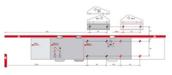 Прикладываем части к проделанным отверстиям, устанавливаем крепеж. На схеме находим тот класс усилия на открывание, который нам необходим (в данном случае EN2) и устанавливаем части так, как показано на рисунке.