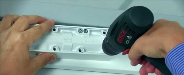 Обычно в комплекте идут два типа крепежа: для металла (металлопластика) и древесины. Выбираем сверло подходящего размера и дрелью сверлим отверстия в обозначенных местах.