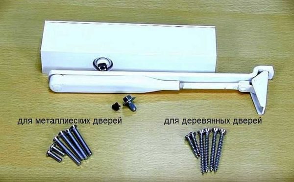 Дверные доводчики комплектуются двумя типами крепежа — для металлических и деревянных дверей