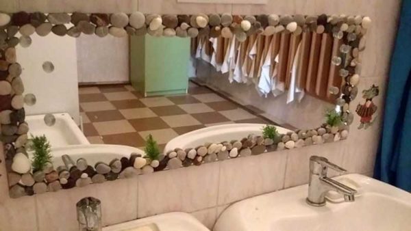 Этот декор зеркала идеально подходит для ванной комнаты. Декор можно мыть, он хорошо вписывается в концепцию оформления ванной комнаты. Особенно декоративно будет смотреться такое зеркало, если мозаика подобрана в тон плитки.