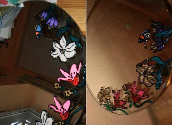 Украшение зеркала при помощи витражных красок