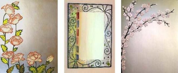 Вроде, небольшие отличия, но смотрится оформление в разных техниках по-разному. Вторая позволяет получить ажурный декор зеркала, который как бы подсвечивается отражением.