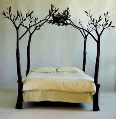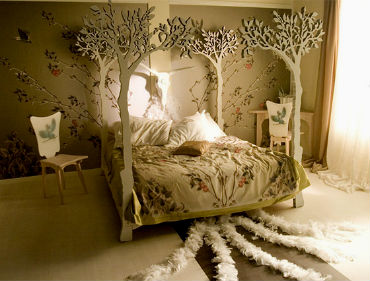 2. Четыре основные стойки в виде кроны деревьев выглядят впечатляюще. Такое изделие идеально впишется в детскую комнату или в спальню, оформленную в романтическом стиле.