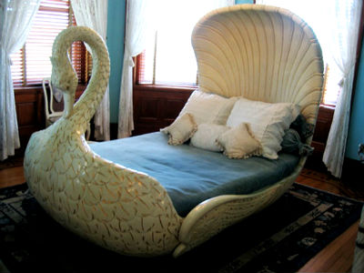 19. Лебедь. Очень эффектно смотрится кровать, выполненная в виде лебедя, посмотрите только, как четко подмечены детали: длинная тонкая шея, крылья, перышки.