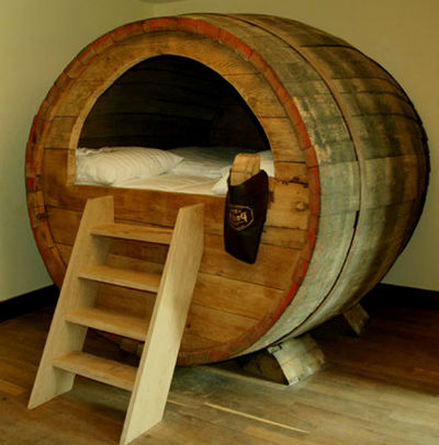 13. Бочка. Интересная кровать, к тому же выполнена из экологически-чистого материала, натурального дерева.