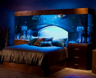 11. Аквариум. Невероятное решение для спального ложа, очень вдохновляющая идея, представьте, ложишься спать и наблюдаешь за рыбками, как же это умиротворяющее! Известно, что данное изделие имеет название Acrylic Tank, и вмещает 2950 литров воды, а стоит 11500 долларов.