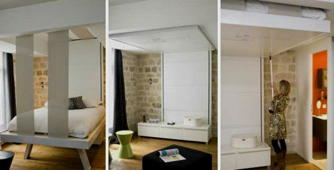 26. Выдвижная потолочная кровать. На ночь ее нужно спускать вниз, а днем соответственно прятать наверх, ее стоимость колеблется  в пределах 3800 долларов.