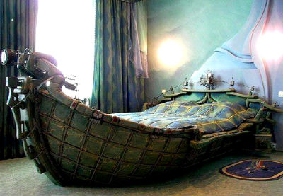 1. Кровать-парусник. Невероятно смотрится кровать имитирующая лодку, такой кроватке нужен высокий потолок или она великолепно впишется в дизайн приусадебного участка.