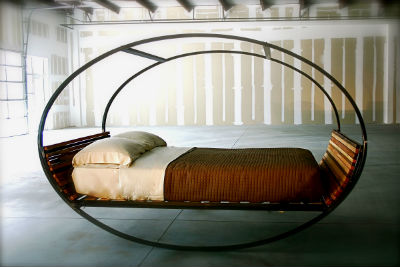 10. Качалка. Долго ворочаетесь и не можете уснуть, кровать-качалка решит эту проблему. А разработал ее дизайнер Джое Манус, основатель компании Shiner. Овальные обручи созданы из карбона, и при малейшем движении приводят изделие в движение, если появилось желание сделать кровать Moodнеподвижной, необходимо просто подставить резиновые стопперы.