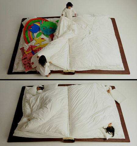 3. Кровать-книжка. Спать можно «в книжных листах», невероятное решение! Создателем данного шедевра является японский фотограф, а по совместительству дизайнер Yusuke Suzuki.