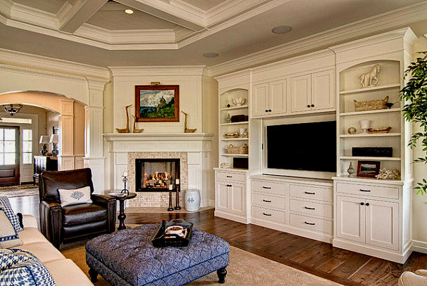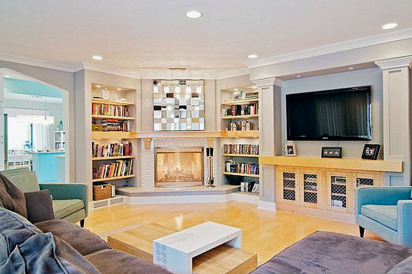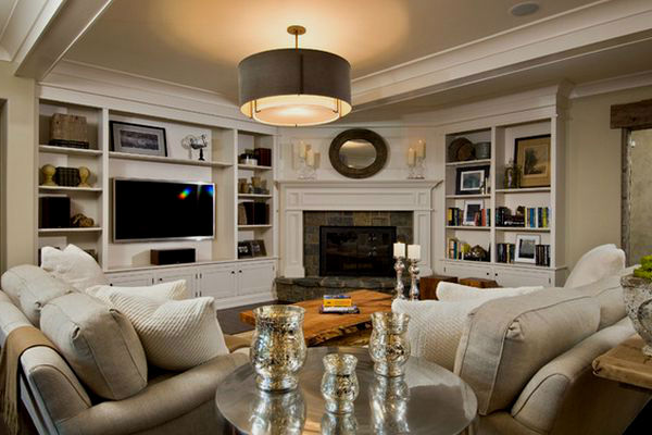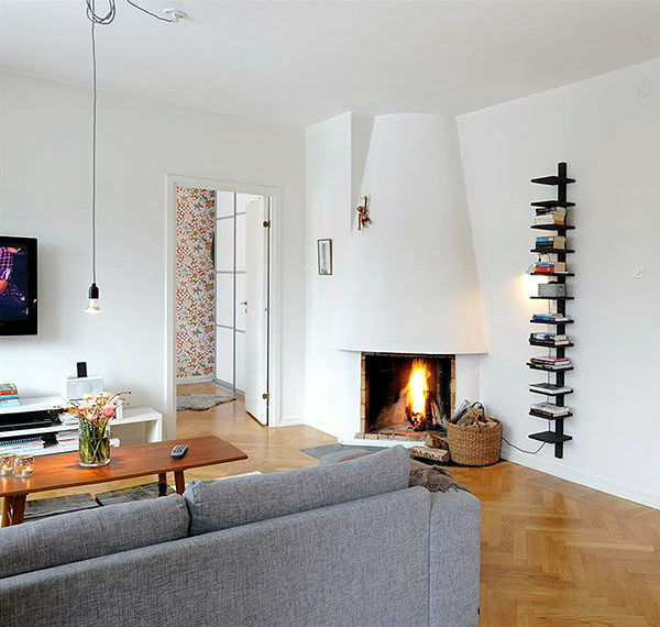 Ниже можете рассмотреть различные вариации каминов, расположенных в угловых частях гостиных комнат. Обратите внимание, насколько такие варианты каминов смотрятся компактно, нисколько не загромождая помещения. Особенно хорошо такие камины вписываются в светлые интерьеры, при взгляде на которые, кажется, будто вся комната парит в воздухе, настолько воздушно она воспринимается.