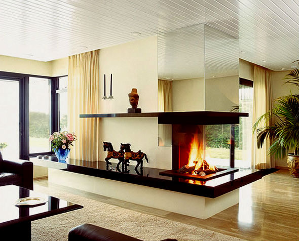 • Смотрятся оригинально. Безусловно, все привыкли видеть обычные прямоугольные камины, ну а такой нестандартный подход к его расположению значительно выделяет его среди массы аналогичных прямых каминов.