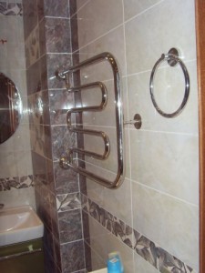 Важно: при укладке плитки на стены следует помнить о полотенцесушителе, который также рекомендуется заменить.