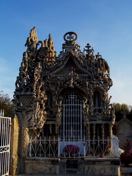 Кстати, закончив строительство, мастер-любитель начертал над входом слова: «Пусть теперь за работу берется более упорный, чем я». Известно, что Шеваль мечтал быть похороненным в своем доме, он даже для этого в подвале оборудовал склеп, но местные власти отказали ему в справедливом желании. Тогда Фердинан принялся за реконструкцию семейного склепа на кладбище, выполнив его в едином стиле с дворцом (эта работа заняла целых 8 лет). Буквально спустя год после окончания строительства в 1924 году в возрасте 88 лет Шеваль скончался, и был погребен в семейном склепе.