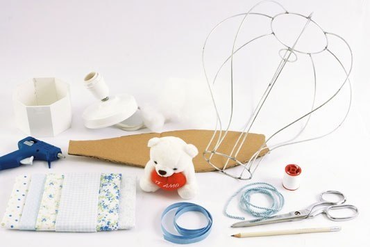 Найти все необходимое просто, кроме каркаса — можно поискать каркас от старой люстры, а можно аккуратно сделать самому из толстой проволоки.