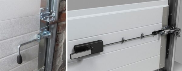 • Как вы поняли, первые два способа подходят если полотно поднимается вручную, третий — для автоматизированного варианта. К ригельному замку или автоблокировке всегда можно попросить установить задвижку — на случай длительного отсутствия.