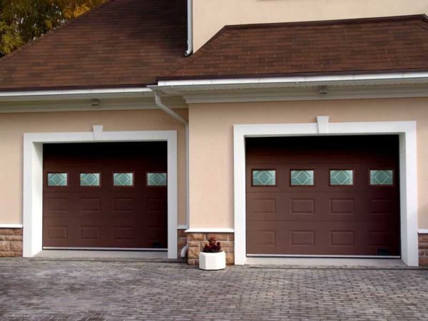 Секционные гаражные ворота могут быть с окошками. Их располагают обычно в верхней трети створки, хотя можно и посередине и где-нибудь в другом месте. Если в гараже вы проводите много времени днем, имеет смысл заказать остекление большой площади, чтобы света было достаточно. Это позволит сэкономить на счетах ха электричество — в дневное время можно не использовать электрический свет.