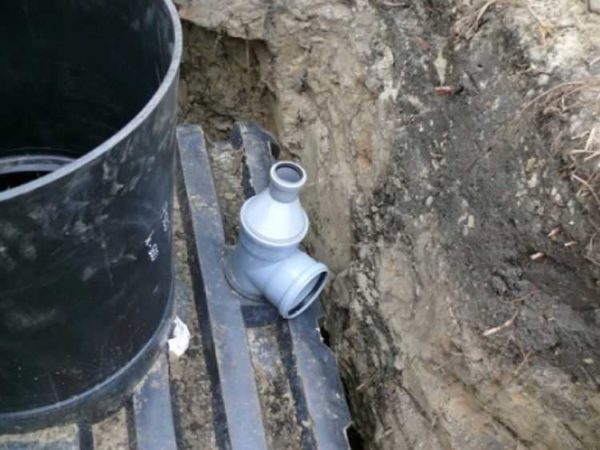 - К входному патрубку, который находится на верхней поверхности корпуса, подключаем сточную трубу от дома. Также укладываем трубу к установкам доочистки или к промежуточному колодцу (в зависимости от выбранной схемы). Трубы лучше использовать полиэтиленовые для наружных работ (рыжего цвета). Они выдерживают отрицательные температуры, нормально переносят нагрузки.