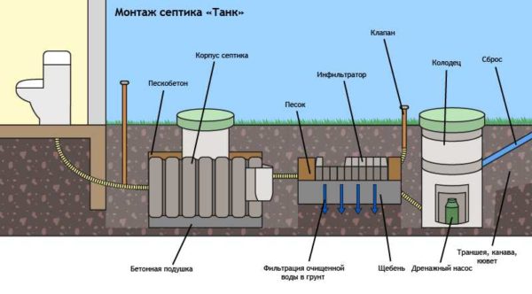 Схема установки инфильтратора для септика Танк
