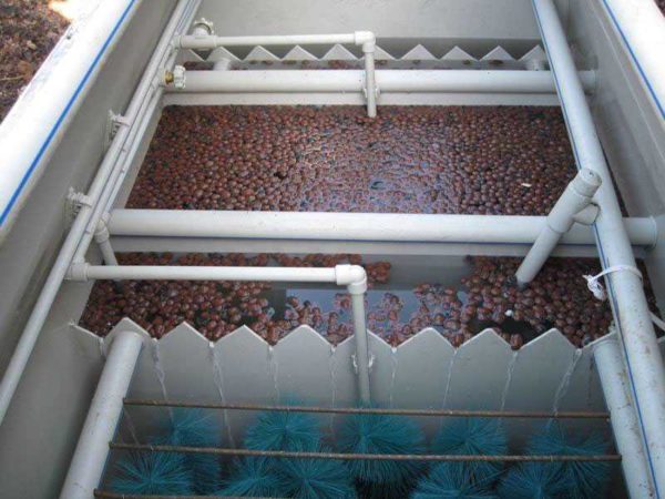 - Уже достаточно чистая вода из отстойника попадает во второй аэротенк с ершами, где очистка завершается. Тут находится известняковый щебень, который связывает фосфор. Его трудно удалить другими способами и мало кто об этом беспокоится.