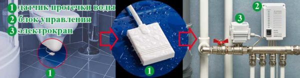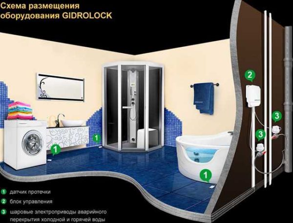 Как и многие другие, система защиты от протечек воды Гидролок состоит из: