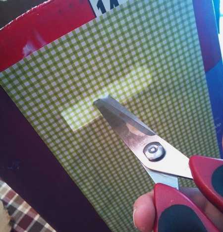 Посмотрев на свет, вырезаем ножницами ручки. Чтобы край был более аккуратный, проклеиваем срезы ручки тонкой полосой бумаги. ТАкже полосой оформляем верхний срез.