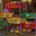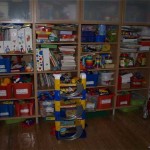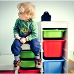В стеллажи можно ставить разные коробки-ящики, в которые сгружать мелкие и не очень игрушки. Сразу учтите, что деревянные ящики (или из фанеры, ДСП и других подобных материалов) для маленьких детей — не лучший вариант. Они слишком тяжелы, пытаясь достать игрушки дети часто травмируют пальцы. Также у них жесткие травмоопасные углы, которые можно, конечно, немного скруглить, но все равно они остаются жесткими. Такие ящики подойдут для школьников. У них уже и сил больше, и координация развита лучше. А хранение игрушек для малышей лучше организовать в более мягких и не таких травмоопасных пластиковых контейнерах/корзинах или в плотных ящиках, оклеенных цветной бумагой или тканью.