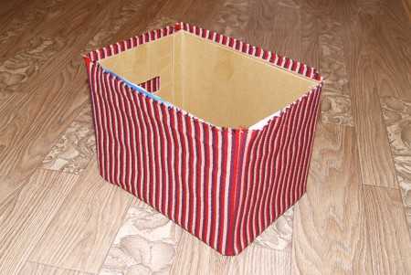 Обшиваем верхушку ящика для игрушек, прорезаем ручки