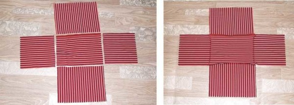Вырезаем из ткани двойной комплект заготовок и сшиваем их