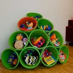 Всего десяток ведер, и у вас есть оригинальная полка для игрушек