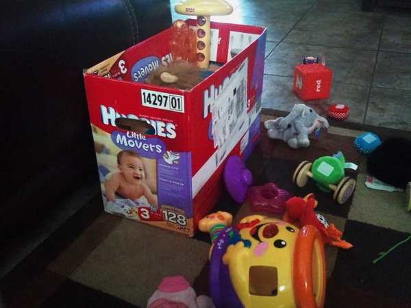 Оформив ручки, получаем готовую коробку для хранения игрушек.