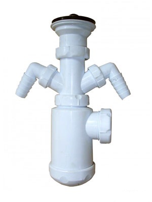 • Откажитесь пусть от красивого, но плоского сифона, для большого объема воды он не подойдет. Лучше поставьте двойной, с отводами для слива стоков с бытовой техники, он также снабжен сбросом лишней жидкости, и предотвратит переполнение раковины.