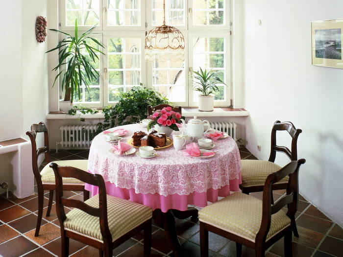 Самый важный момент при выборе скатерти – ее соответствие форме и размеру стола, для которого она предназначается. Длинная скатерть будет цепляться, короткая будет куцей. Золотая середина в этом текстильном деле – 25..30 см от края стола. Хотя, все зависит от интерьера, где находится стол и от стиля самой скатерти. Всегда бывают исключения.
