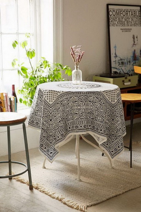 По праву, белая скатерть всегда будет эталоном. Но из-за быстрой маркости ее заменяют цветным текстилем, на котором может присутствовать любой орнамент. Если Вы хотите все же добавить классики, постелите снежно-белую дорожку поверх цветной. В стремлении за всем натуральным, все чаще используются льняные неотбеленные скатерти. С ними сложно работать из-за усадки и глажки, но выглядят они красиво.