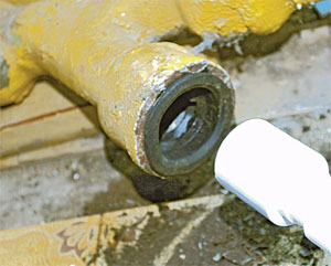 • Далее монтируется водосливная арматура, включая сифон и слив-перелив. Выпуск вставляется в нижнее отверстие, а разбортованный патрубок вкручивается в нижний конец тройника и вставляется в раструб сифона.