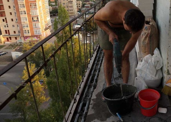 Если край балконной плиты неровный, его бетонируют