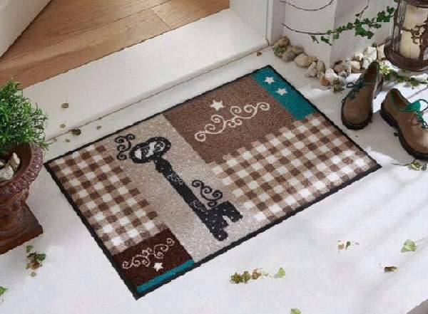 Начнем с входной двери. Здесь можно разместить оригинальный коврик, который будет всегда встречать вас хорошим настроением. Причем, совершенно не важно, в каком стиле оформлено Ваше жилище. Внешнее декорирование квартиры с помощью симпатичного коврика свидетельствует о трепетном отношении хозяев к своему жилищу. Кроме того, это не только красиво, но и практично.