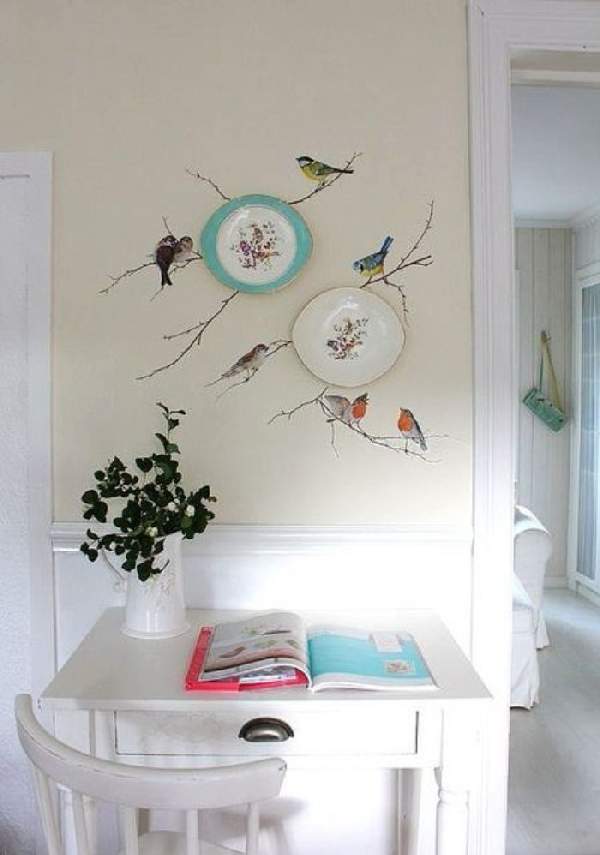 Перед тем, как декорировать квартиру своими руками, используя блюдца, а также тарелки, определитесь с местом размещения. Лучше всего эти композиции будут смотреться в помещениях кухни или столовой, хотя не исключены другие варианты. Важным аспектом перед выбором посуды является фон. На темном, отлично будут смотреться белоснежные тарелки, для обоев с принтом лучше разместить посуду одной цветовой палитры, а на светлой однотонной стене самое место расписной посуде, которая отлично дополнит стилистические направления прованс, кантри. На фото ниже смотрите способы декорирования стен тарелками.