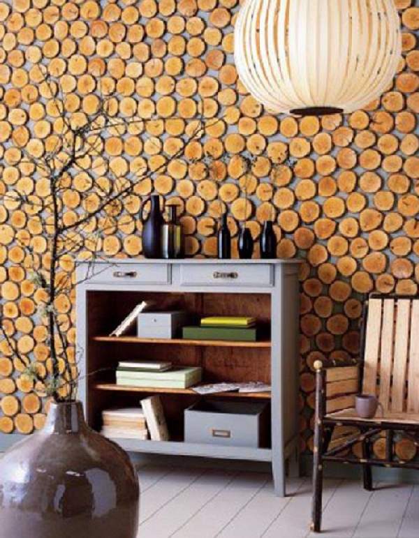 Очень эффектное декорирование квартиры можно осуществить с помощью спилов дерева. Причем они могут быть разного диаметра, толщины. Такое панно наполнит интерьер домашним уютом, близостью к природе. Это идеальный вариант для эко стиля, но многие другие направления он также красиво дополнит. Не стоит забывать о том, что «пятачки», перед тем, как монтировать, стоит обработать средствами от грибка, можно придать дополнительно оттенок морилкой, залакировать.