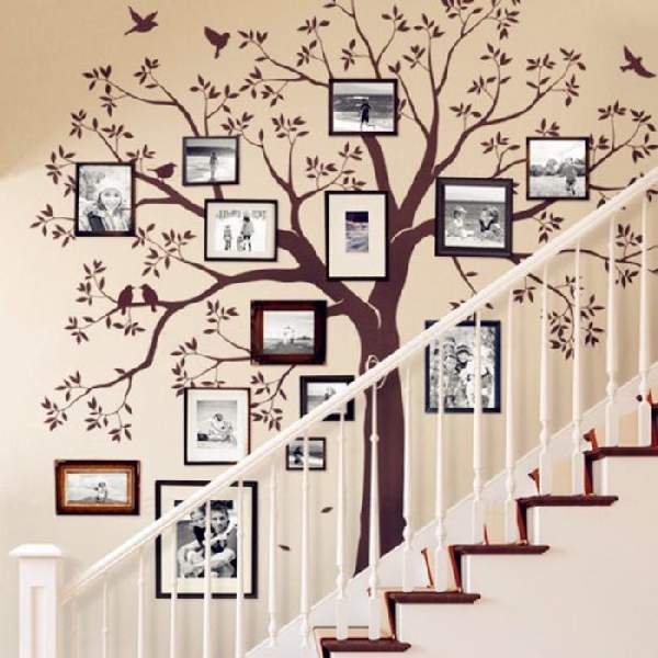 Простой метод создания декорации — использовать виниловые наклейки. Они легко клеятся и, собственно, также просто снимаются. Это дает возможность в любой момент обновить поднадоевший дизайн. Применяя такие способы декорирования квартиры, можно создавать композиции, оформив, к примеру, семейное древо. Само ветвистое дерево будет наклеено на стену, а фотографии, членов семьи, облаченные в рамки, прибиты таким образом, будто висят на ветвях.
