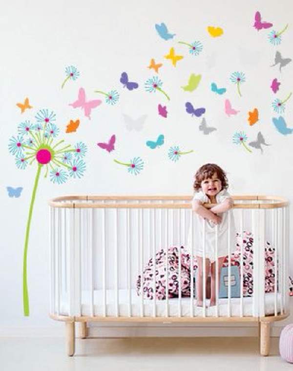 Пустующий вид стен можно разбавить оригинальными рисунками. Если Вы умеете рисовать — это дает преимущество, возможность изобразить, что душа пожелает. Когда природа обделила Вас таким даром, приобретите понравившийся трафарет. Довольно удобно таким образом осуществить современное декорирование стен детской, изобразив, например, солнышко, цветочки. Когда с возрастом, предпочтения ребенка поменяются, Вы сможете добавить рисунок новыми персонажами. Такой метод поможет преобразить любое помещение, которое кажется Вам недостаточно уютным.