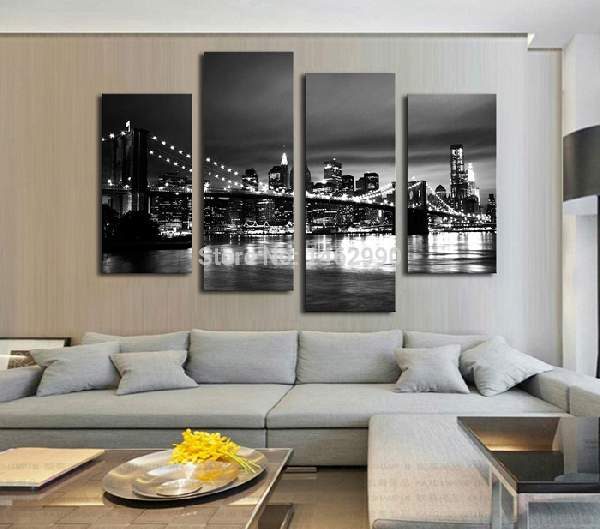 Например, для минимализма выгодным вариантом станет белая картина с ярко-красным изображением, а для ретро — черно-белый постер. Довольно актуально сейчас размещать изображения городов: мегаполисов или же небольших улочек. Ярко, с акцентом можно оформить стену красочными абстрактными картинками. При этом, главный постер композиции — самый крупный, размещается на уровне глаз, а остальные его окружают в хаотичном порядке.