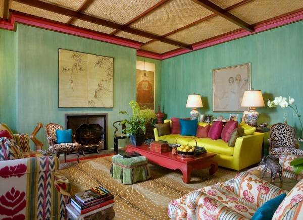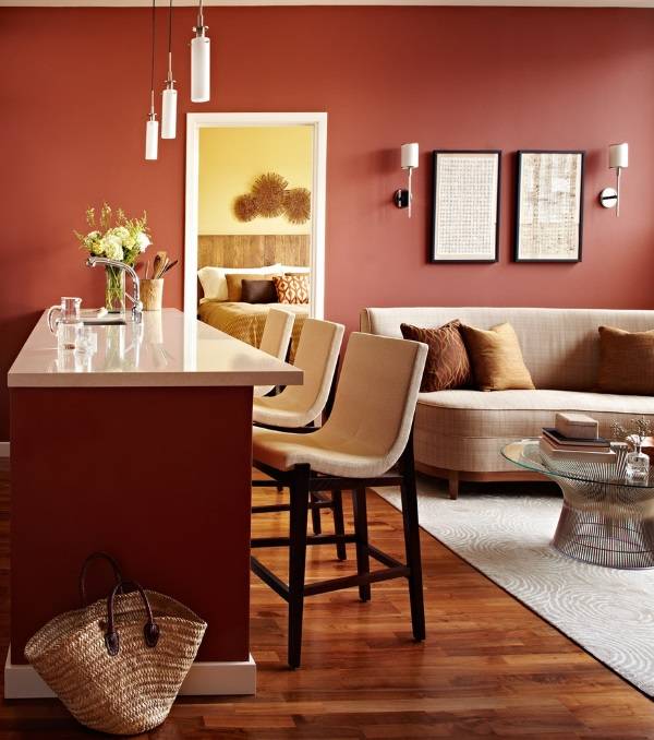 Яркий цвет стен в интерьере (30 фото):